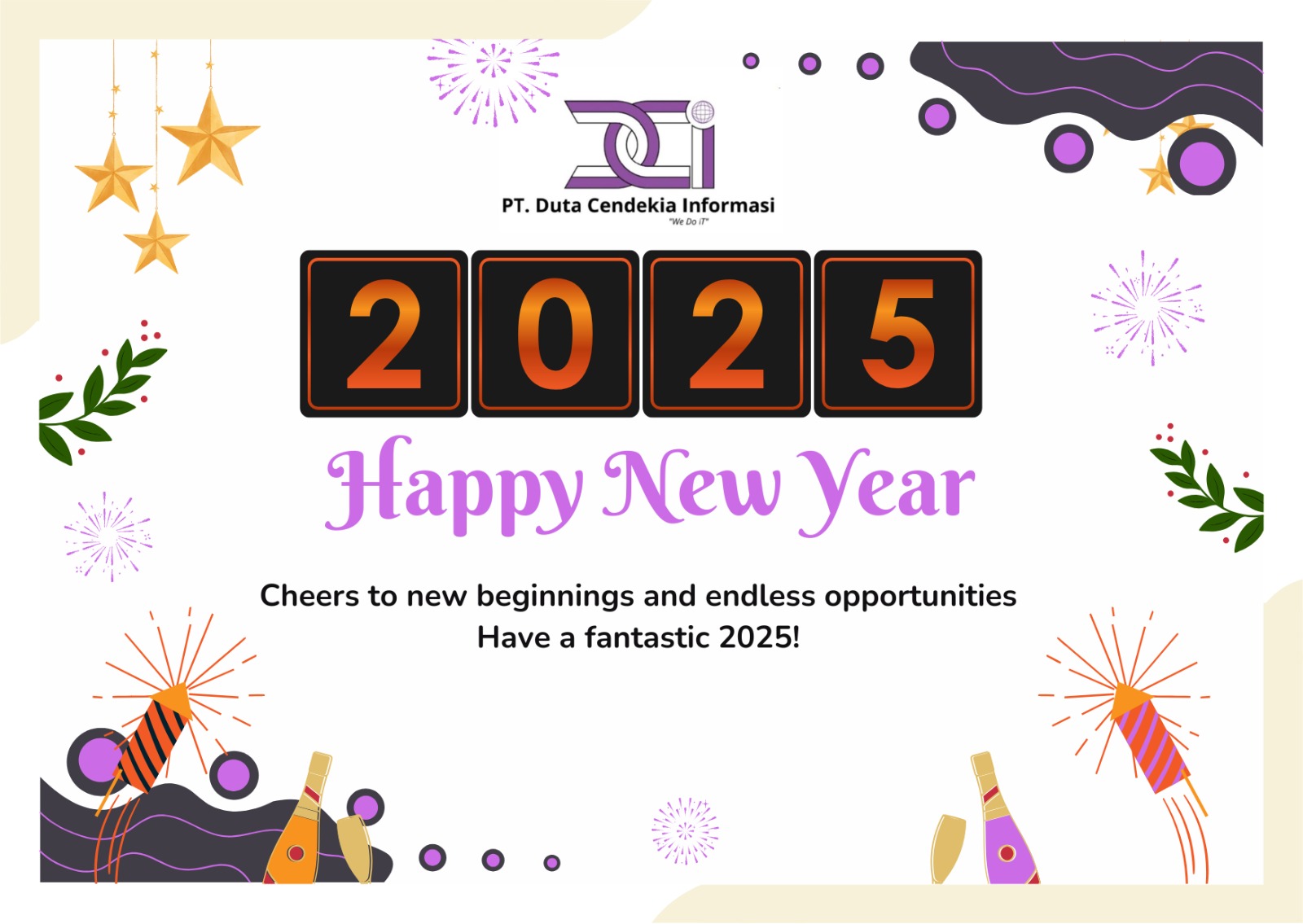 We from the big family of PT Duta Cendekia Informasi joyfully wish a Merry Christmas and New Year to all partners, loyal customers, and colleagues who have been an important part of our journey so far. This peaceful and happy moment is the right time to reflect on the journey throughout the year and celebrate the achievements that have been achieved together. May this celebration bring warmth to the family, strengthen the bonds of friendship, and provide new enthusiasm to move forward with optimism.